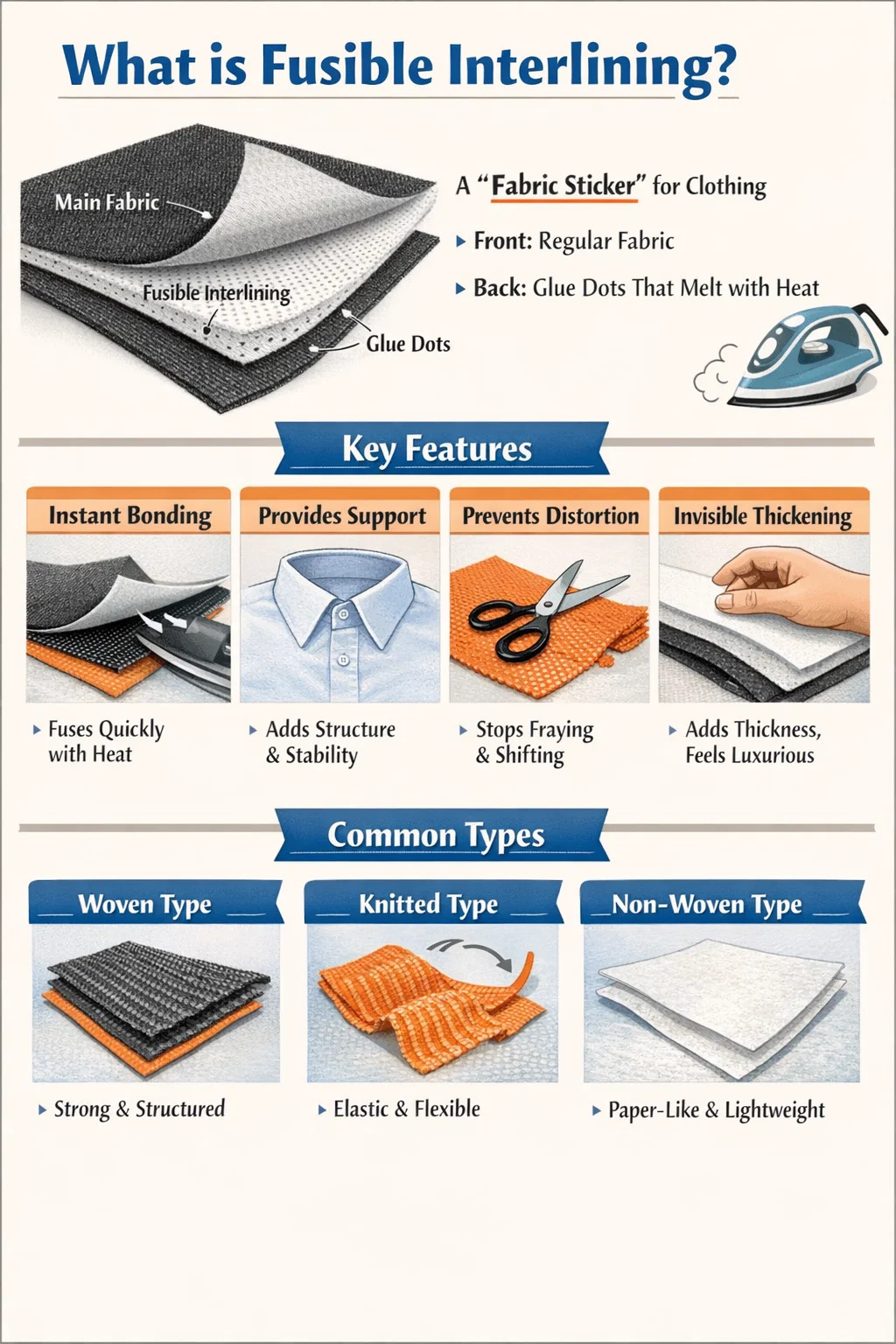 Okamžité lepenie: Toto je jeho najväčšia vlastnosť. Jednoducho ho položíte na zadnú stranu hlavnej látky a prežehlíte žehličkou alebo teplolisom. Teplo roztopí bodky lepidla na zadnej strane, čo spôsobí, že vložka a tkanina sa k sebe pevne prilepia.