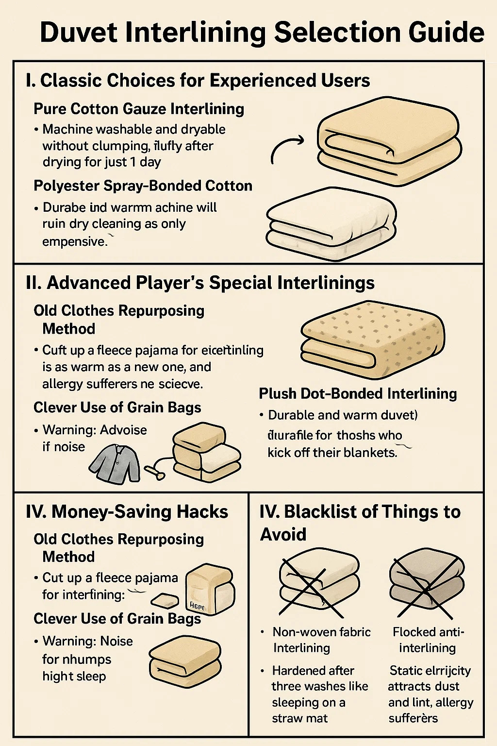 Vyrovnajte vnútornú vložku vrecka na ryžu a použite ho ako výplň do perín; zabraňuje posúvaniu výplne a blokuje vlhkosť, čo je záchrana počas vlhkého počasia na juhu.