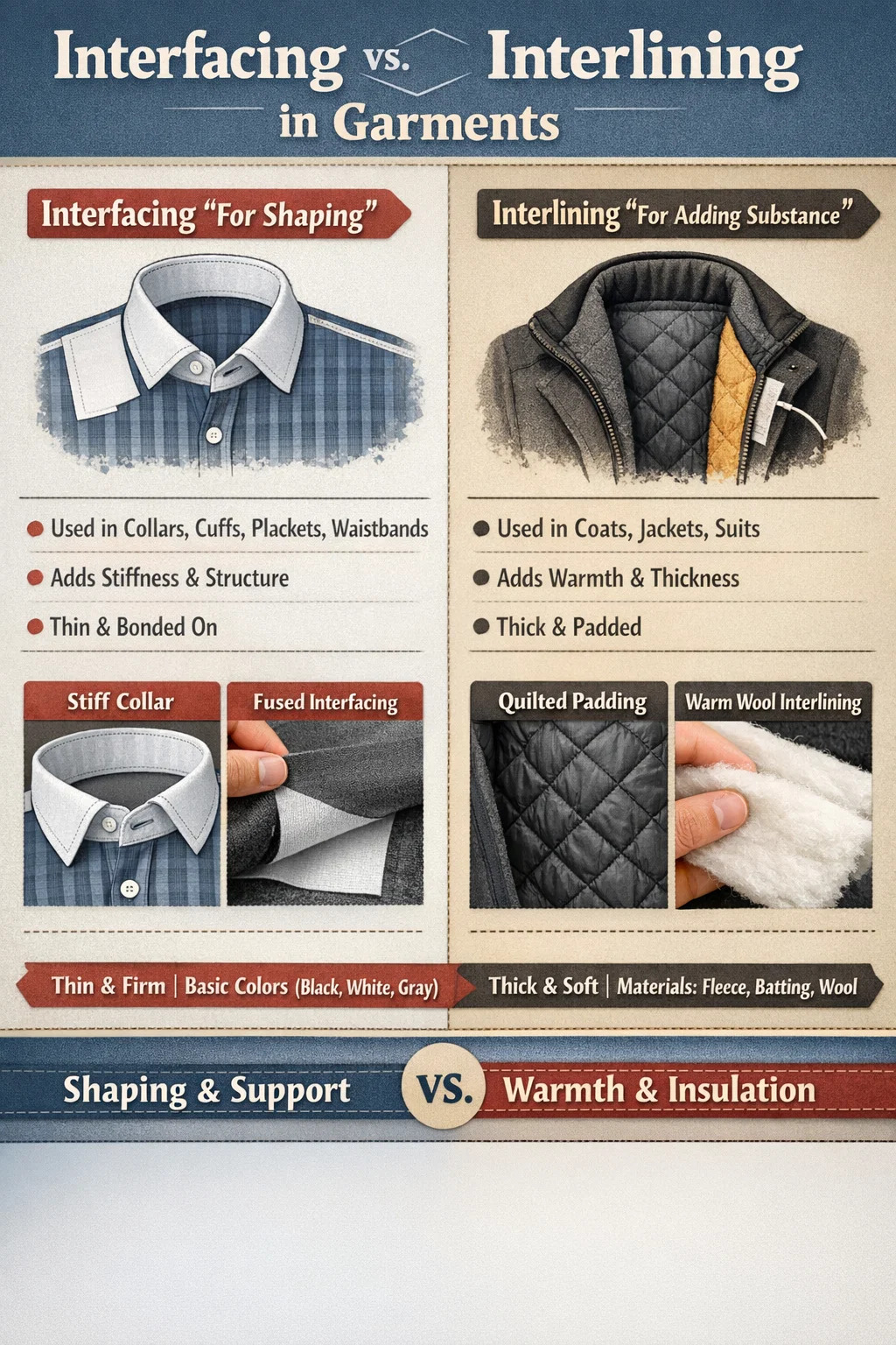 Pri výrobe odevov a spracovaní tkanín, vlizelín a rozhrania sú ako „neviditeľná kostra“ a „izolačná vrstva“ oblečenia. Obe sú síce ukryté vo vnútri odevu, no slúžia na úplne iné účely.